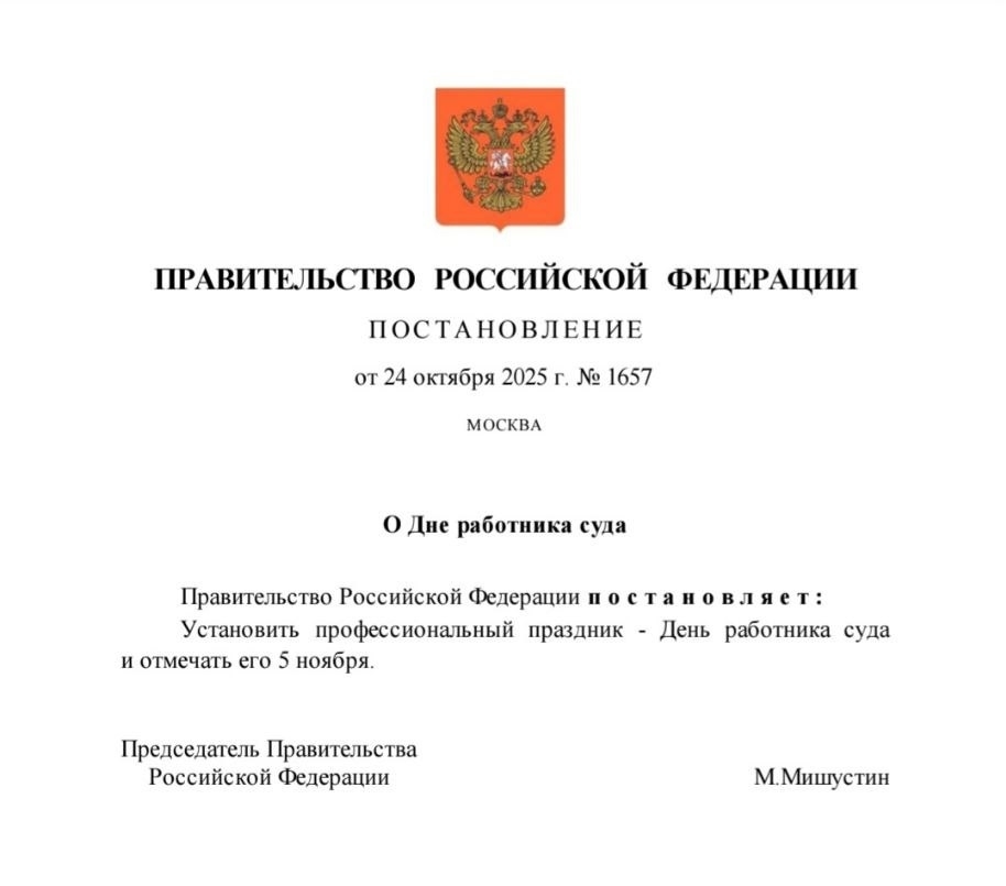 Новый профессиональный праздник – День работника суда будет ежегодно отмечаться 5 ноября. Постановление об этом подписано. Празднование приурочено к дате издания указа Императора Всероссийского Петра I «О форме суда». Этот указ увидел свет в 1723 году. Документ установил порядок рассмотрения дел судами и определил, что гражданские дела и большая часть уголовных дел рассматриваются при непосредственном участии обеих сторон. Кроме того, предусматривались положения о действиях суда по вызову истца или ответчика, а также о праве суда применять к сторонам меры принуждения, например, в виде ареста. Инициатива установления праздничной даты была поддержана Президентом, к которому обратился Председатель Верховного Суда Игорь Краснов. Информация с сайта Правительства РФ http://government.ru/news/56657/